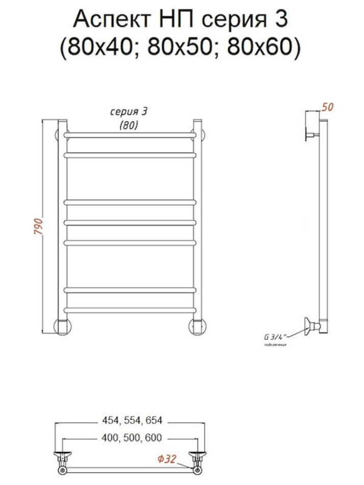 Полотенцесушитель Тругор Аспект НП 3 80*50 (ЛЦ6), ширина 50 см, высота 80 см, хром