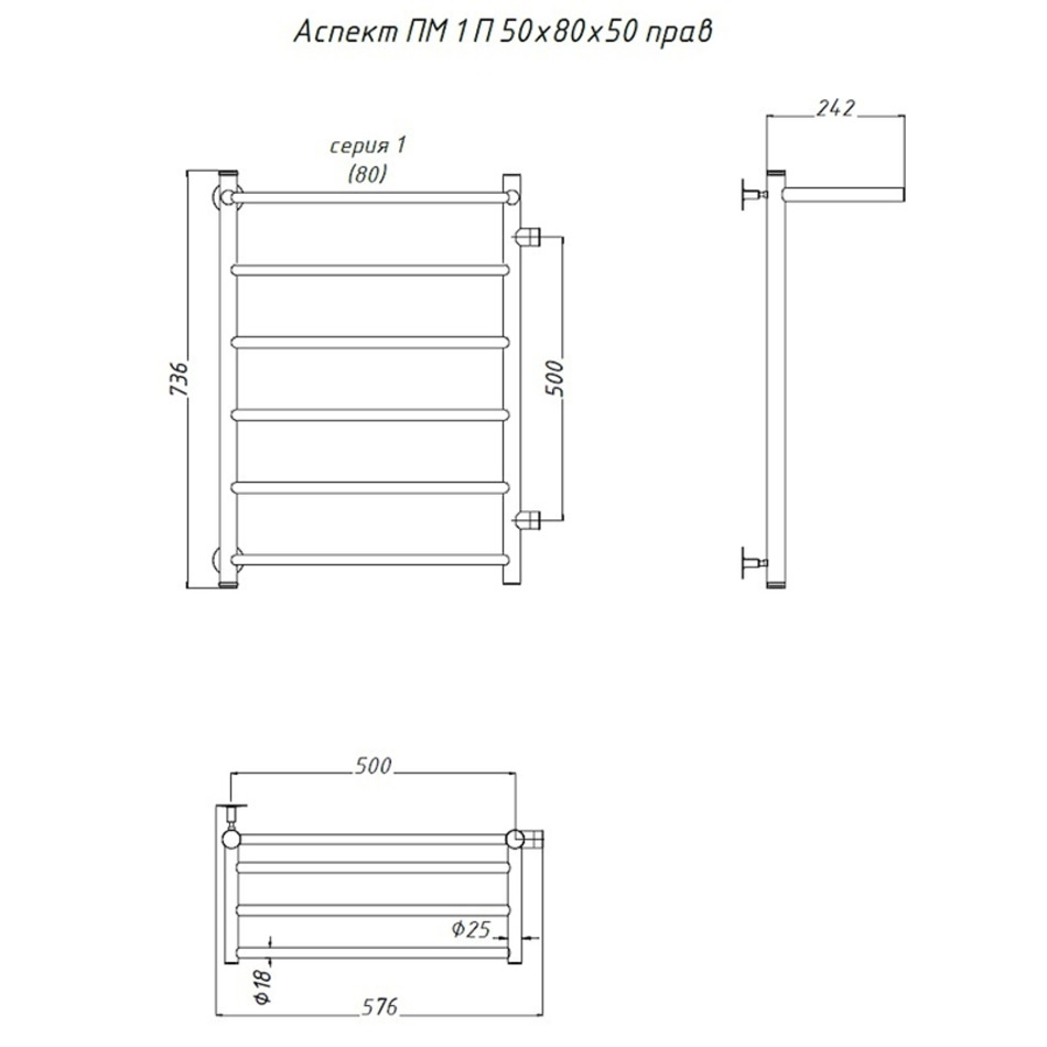 Полотенцесушитель Тругор Аспект ПМ 1 П 50*80*50 (ЛЦ6) правый, ширина 50 см, высота 80 см, боковое подключение 50 см, с полкой, хром