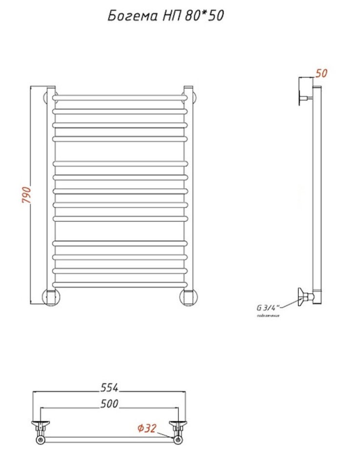 Полотенцесушитель Тругор Богема НП 80*50 (ЛЦ20), ширина 50 см, высота 80 см, хром