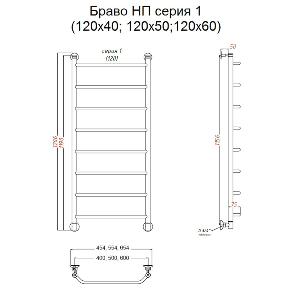 Полотенцесушитель Тругор Браво НП 1 120*40 (ЛЦ4), ширина 40 см, высота 120 см, хром