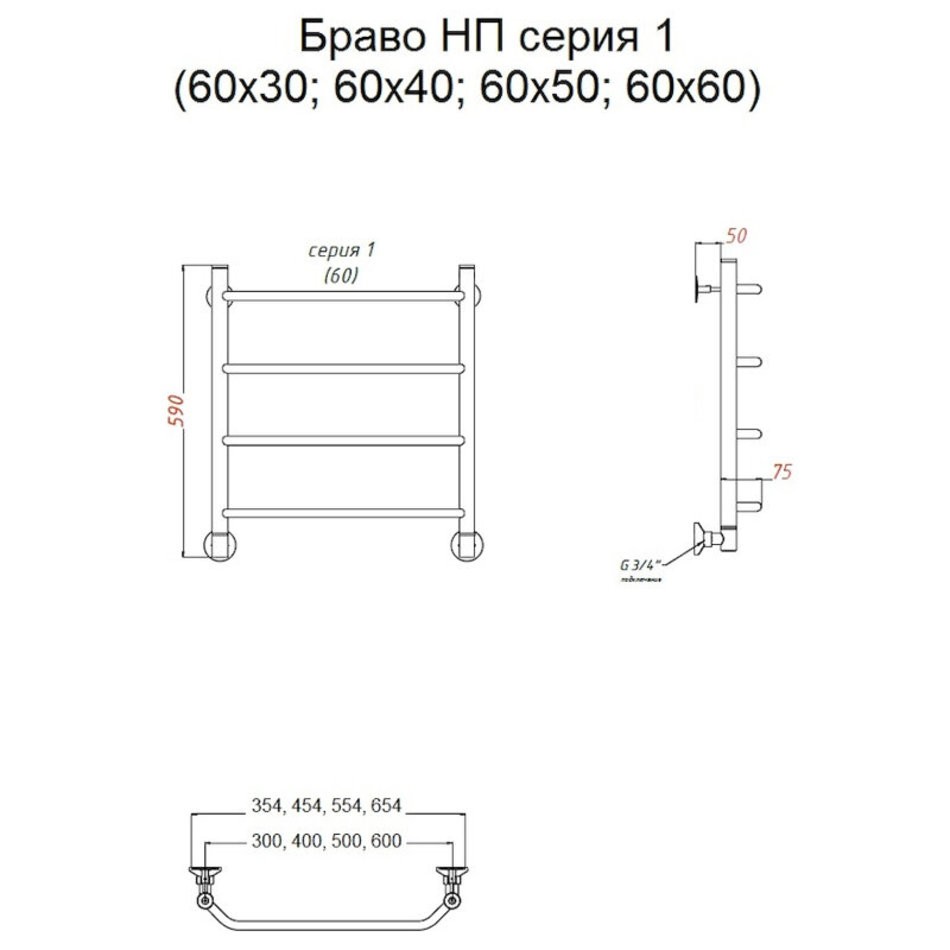 Полотенцесушитель Тругор Браво НП 1 60*40 (ЛЦ4), ширина 40 см, высота 60 см, хром