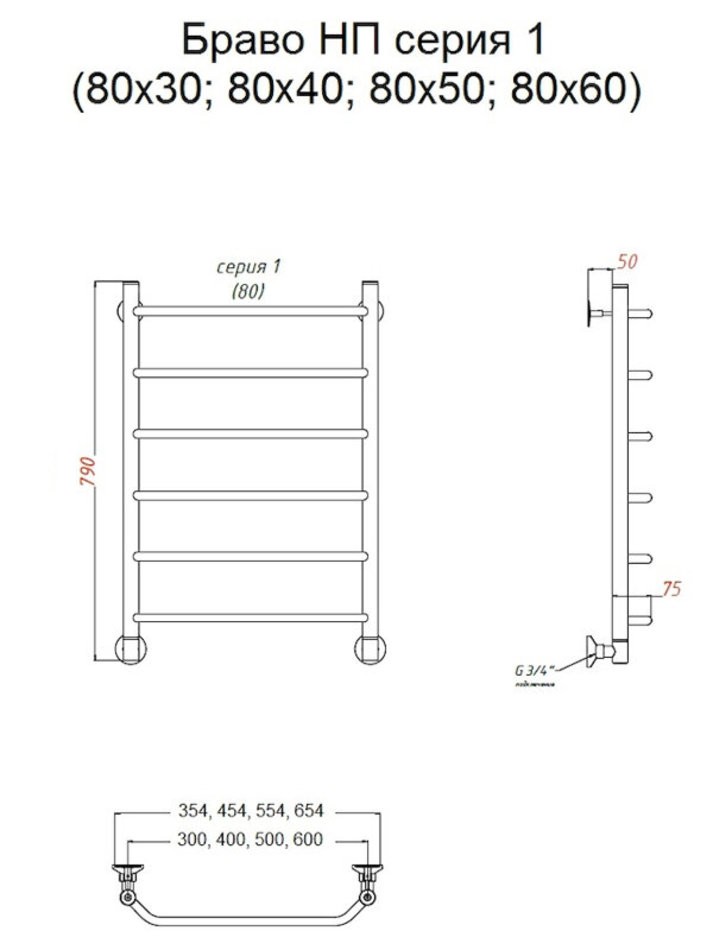 Полотенцесушитель Тругор Браво НП 1 80*50 (ЛЦ4), ширина 50 см, высота 80 см, хром