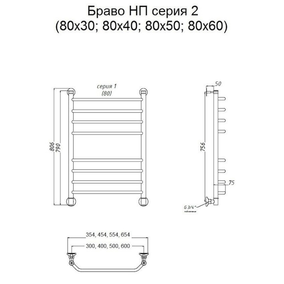 Полотенцесушитель Тругор Браво НП 2 80*30 (ЛЦ4), ширина 30 см, высота 80 см, хром