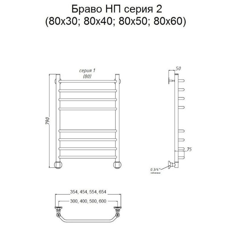 Полотенцесушитель Тругор Браво НП 2 80*50 (ЛЦ4), ширина 50 см, высота 80 см, хром