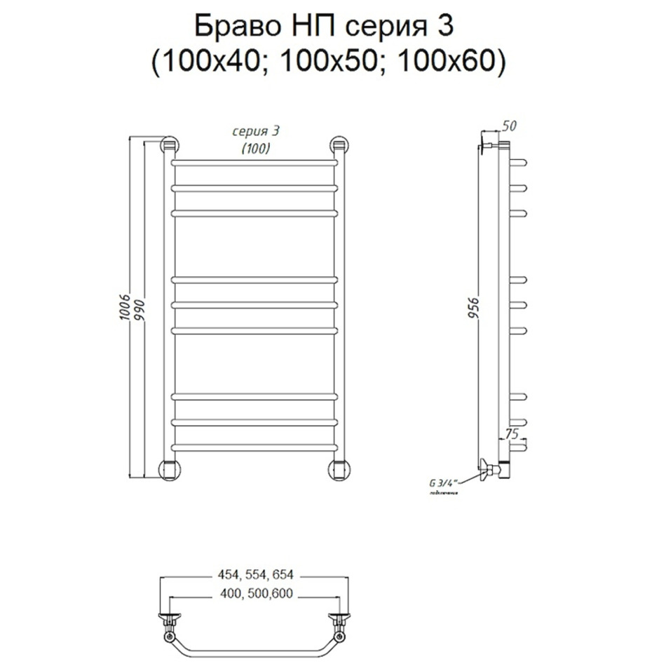 Полотенцесушитель Тругор Браво НП 3 100*40 (ЛЦ4), ширина 40 см, высота 100 см, хром