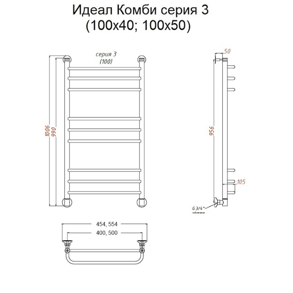 Полотенцесушитель Тругор Идеал комби НП 3 100*40 (ЛЦ17), ширина 40 см, высота 100 см, хром