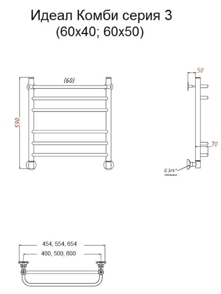 Полотенцесушитель Тругор Идеал комби НП 3 60*50 (ЛЦ17), ширина 50 см, высота 60 см, хром