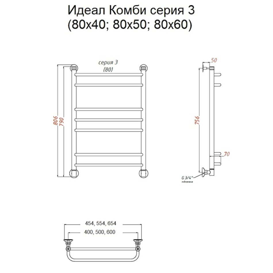 Полотенцесушитель Тругор Идеал комби НП 3 80*60 (ЛЦ17), ширина 60 см, высота 80 см, хром
