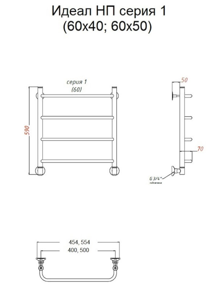 Полотенцесушитель Тругор Идеал НП 1 60*50 (ЛЦ5), ширина 50 см, высота 60 см, хром