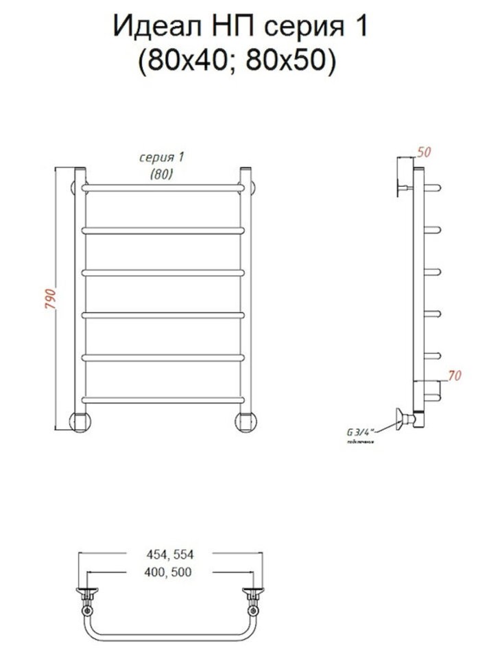 Полотенцесушитель Тругор Идеал НП 1 80*50 (ЛЦ5), ширина 50 см, высота 80 см, хром