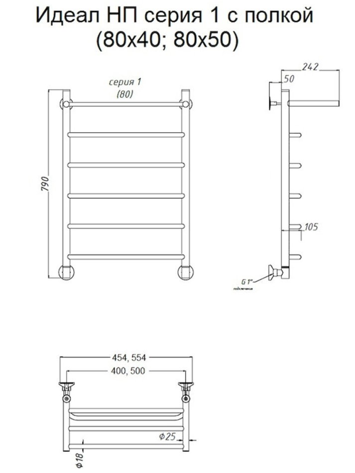 Полотенцесушитель Тругор Идеал НП 1 П 80*40 (ЛЦ5), ширина 40 см, высота 80 см, с полкой, хром