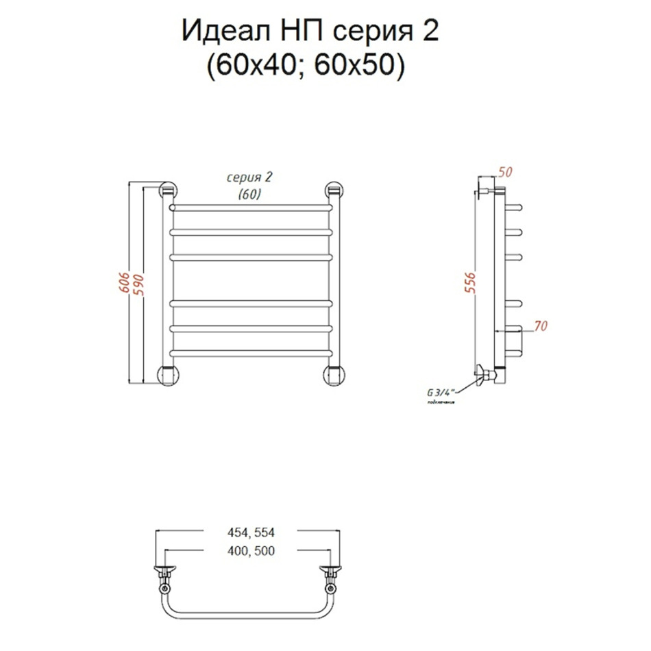 Полотенцесушитель Тругор Идеал НП 2 60*40 (ЛЦ5), ширина 40 см, высота 60 см, хром