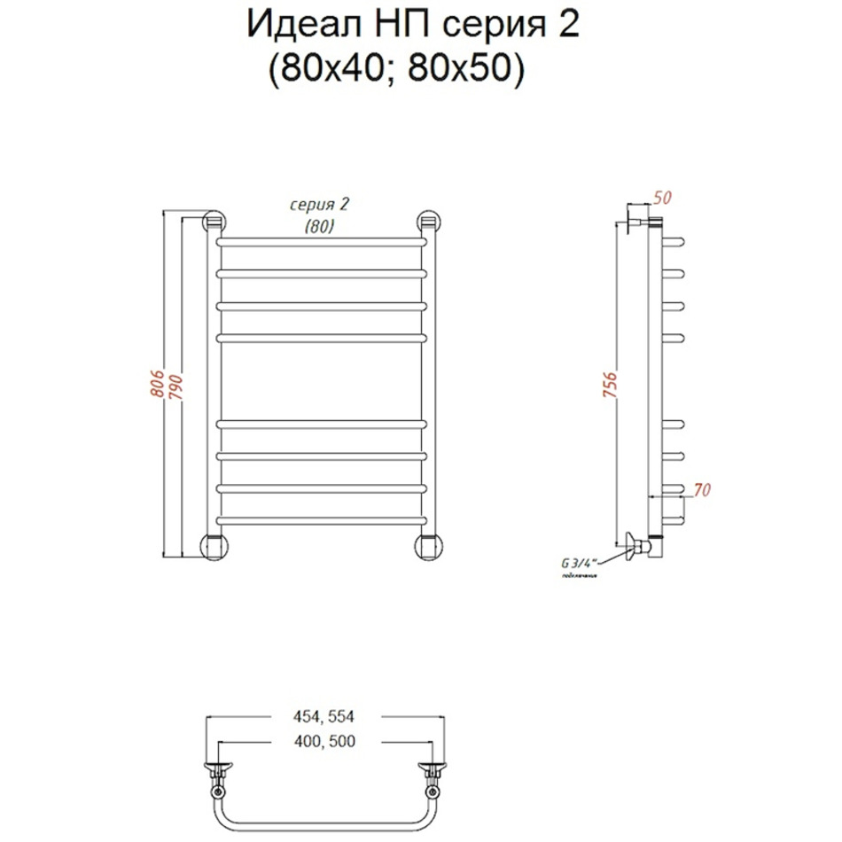 Полотенцесушитель Тругор Идеал НП 2 80*40 (ЛЦ5), ширина 40 см, высота 80 см, хром
