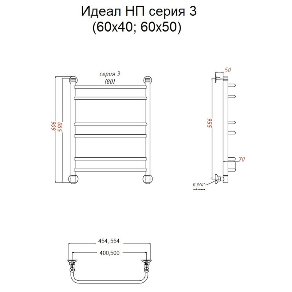 Полотенцесушитель Тругор Идеал НП 3 60*40 (ЛЦ5), ширина 40 см, высота 60 см, хром