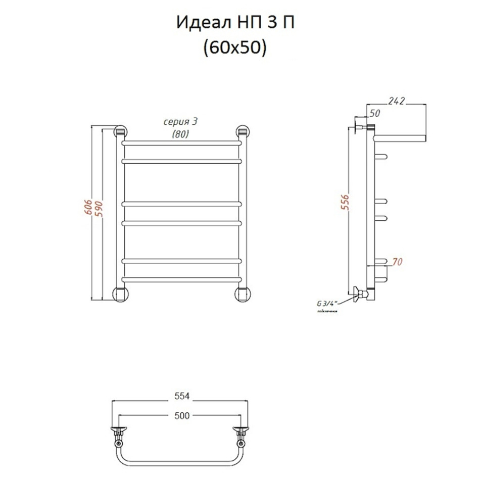 Полотенцесушитель Тругор Идеал НП 3 П 60*50 (ЛЦ5), ширина 50 см, высота 60 см, с полкой, хром