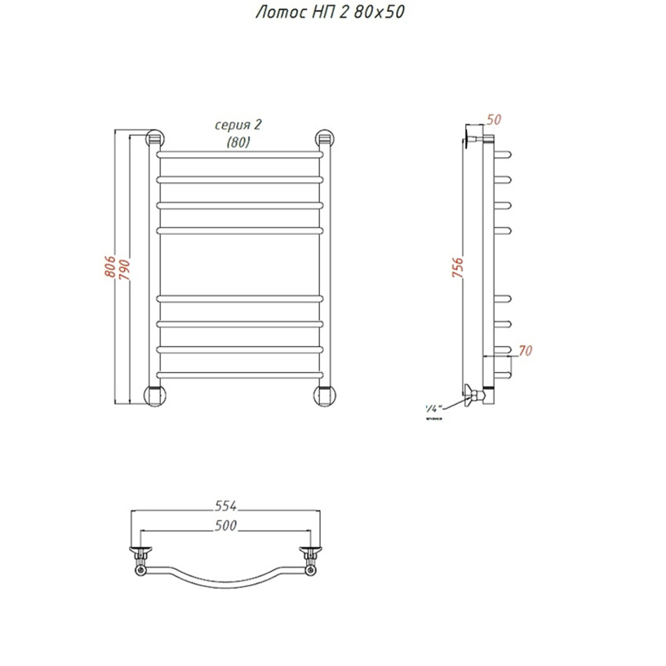 Полотенцесушитель Тругор Лотос НП 2 80*50 (ЛЦ28), ширина 50 см, высота 80 см, хром