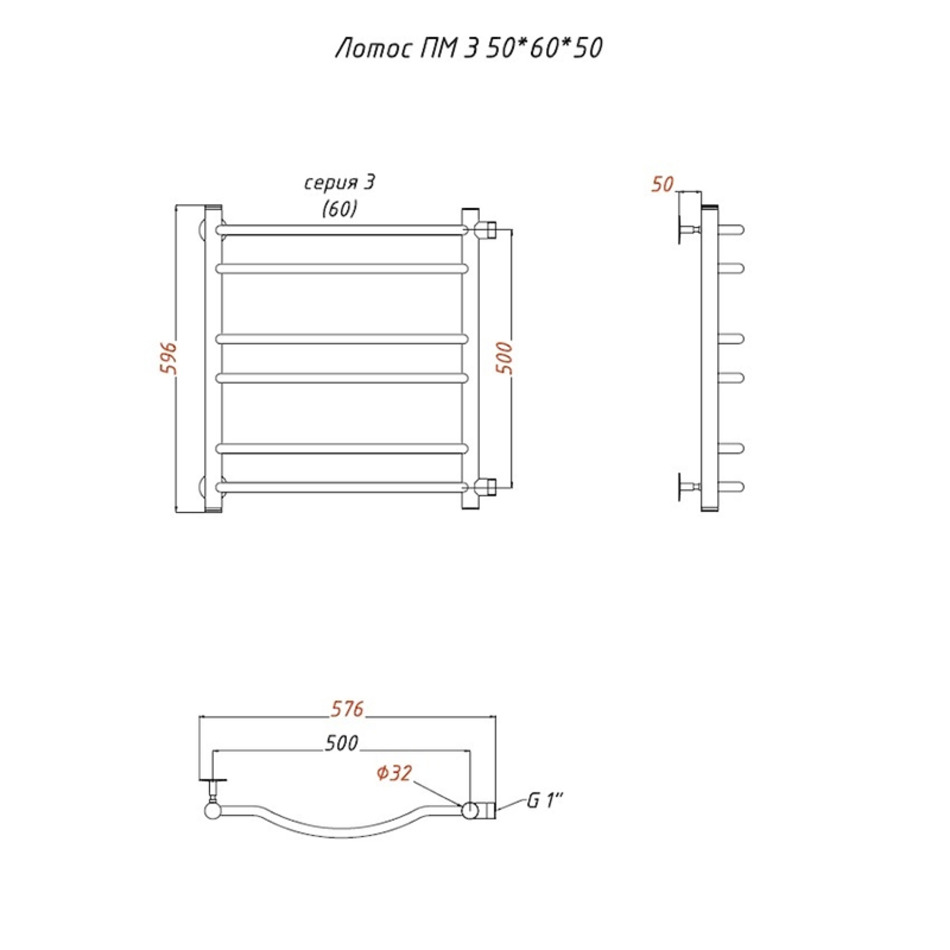 Полотенцесушитель Тругор Лотос ПМ 3 50*60*50 (ЛЦ28), ширина 60 см, высота 50 см, боковое подключение 50 см, хром
