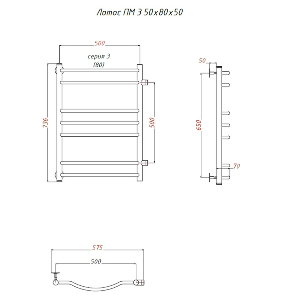 Полотенцесушитель Тругор Лотос ПМ 3 50*80*50 (ЛЦ28), ширина 80 см, высота 50 см, боковое подключение 50 см, хром
