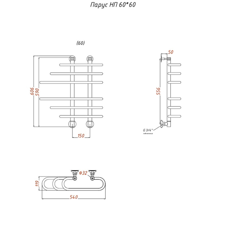 Полотенцесушитель Тругор Парус НП 60*60 (ЛЦ7нов), ширина 60 см, высота 60 см, хром