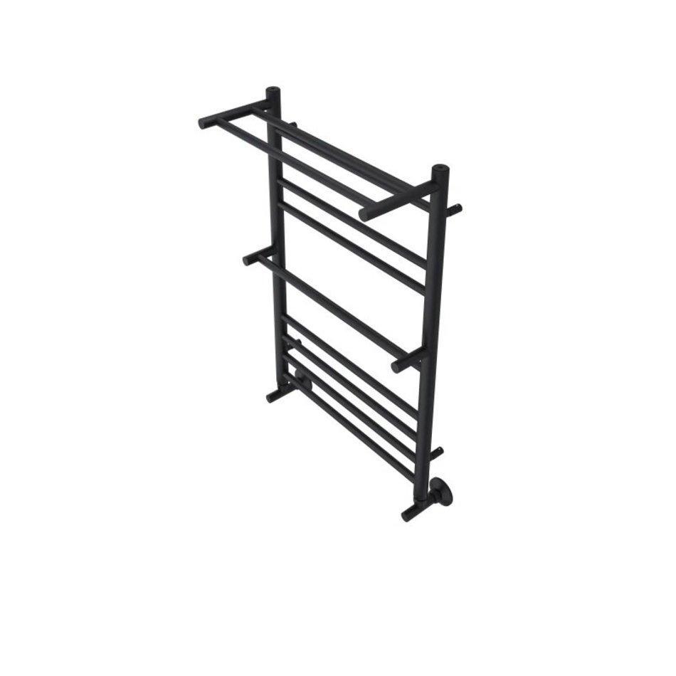 Полотенцесушитель водяной Aquatek Альфа П10, 50/80, с полкой, ширина 50 см, высота 80 см, нижнее подключение, цвет черный муар, AQ RRP1080BL