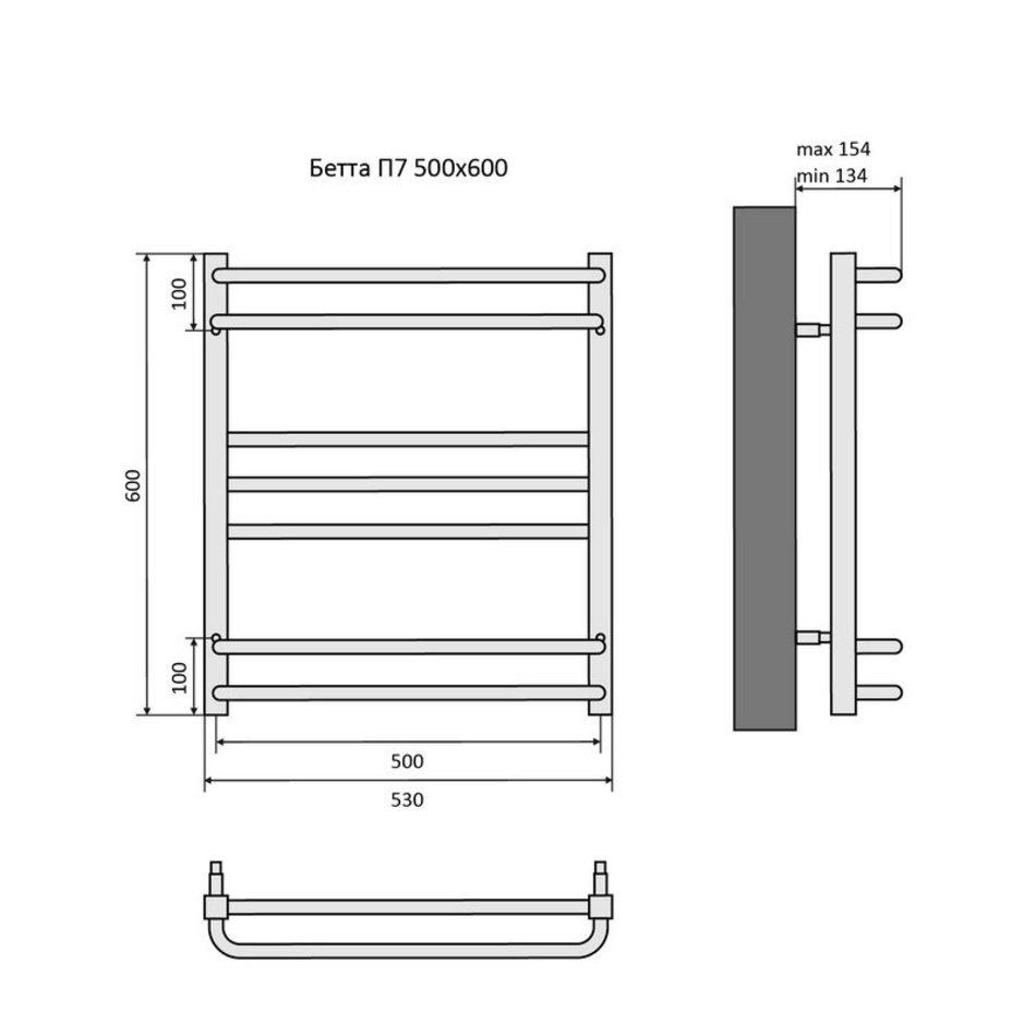 Полотенцесушитель водяной Aquatek Бетта П7, 50/60, ширина 50 см, высота 60 см, нижнее подключение, цвет черный муар, AQ KRC0760BL