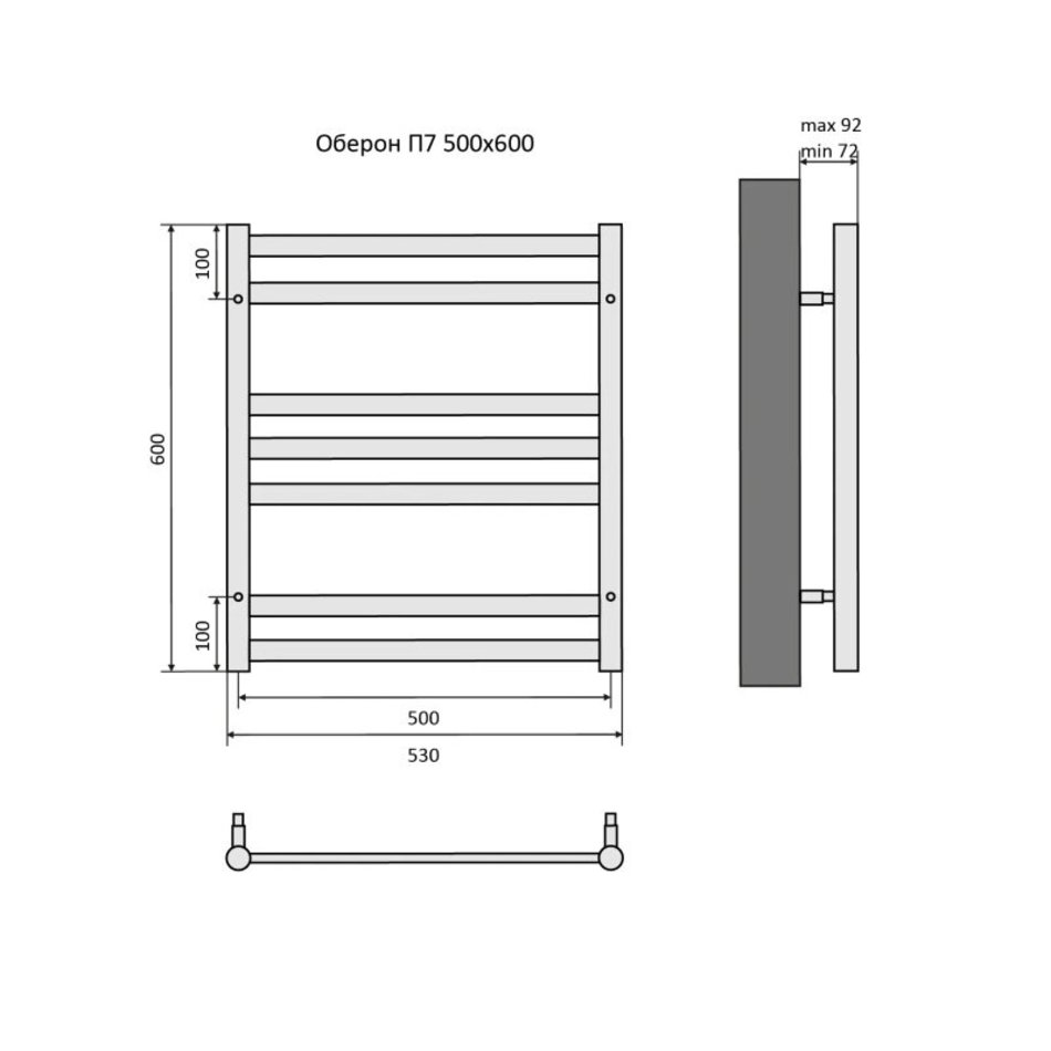 Полотенцесушитель водяной Aquatek Оберон П7 50/60, ширина 50 см, высота 60 см, нижнее подключение, цвет черный муар, AQ RO0760BL