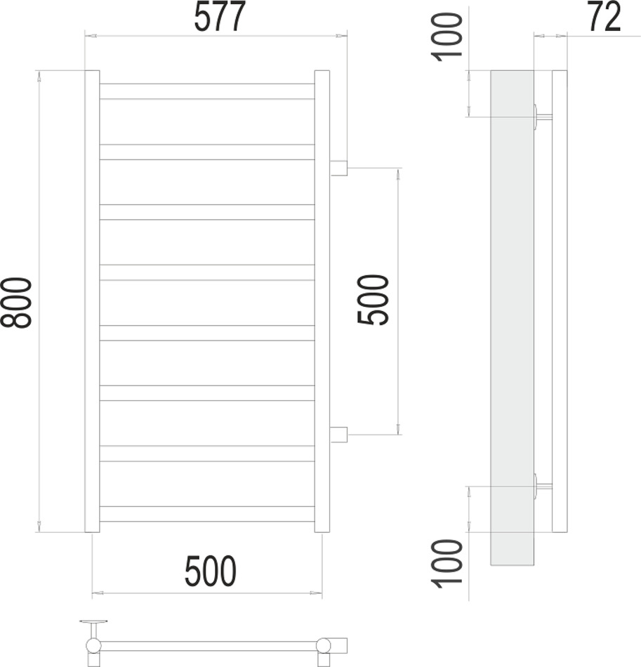 Полотенцесушитель водяной Аврора 4670078529923, П8 500х800, ширина 50 см, высота 80 см, боковое подключение 50 см, хром