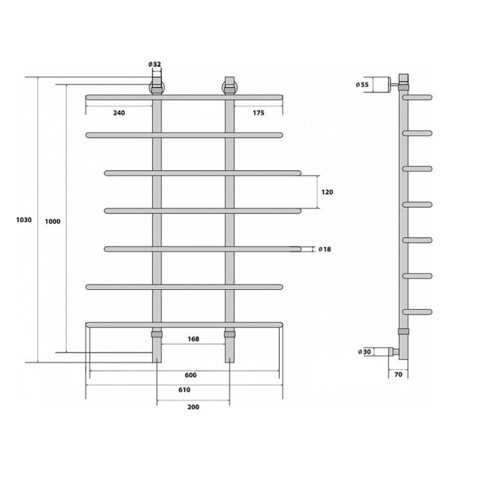 Полотенцесушитель водяной Aero 100x60 изготовлен из высококачественной импортной пищевой нержавеющей стали марки AISI 304 (08и18Н10). Поверхность изделия обработана с помощью электроплазменной полировки, что позволяет получить гладкую зеркальную поверхность, не тускнеющую во время эксплуатации.