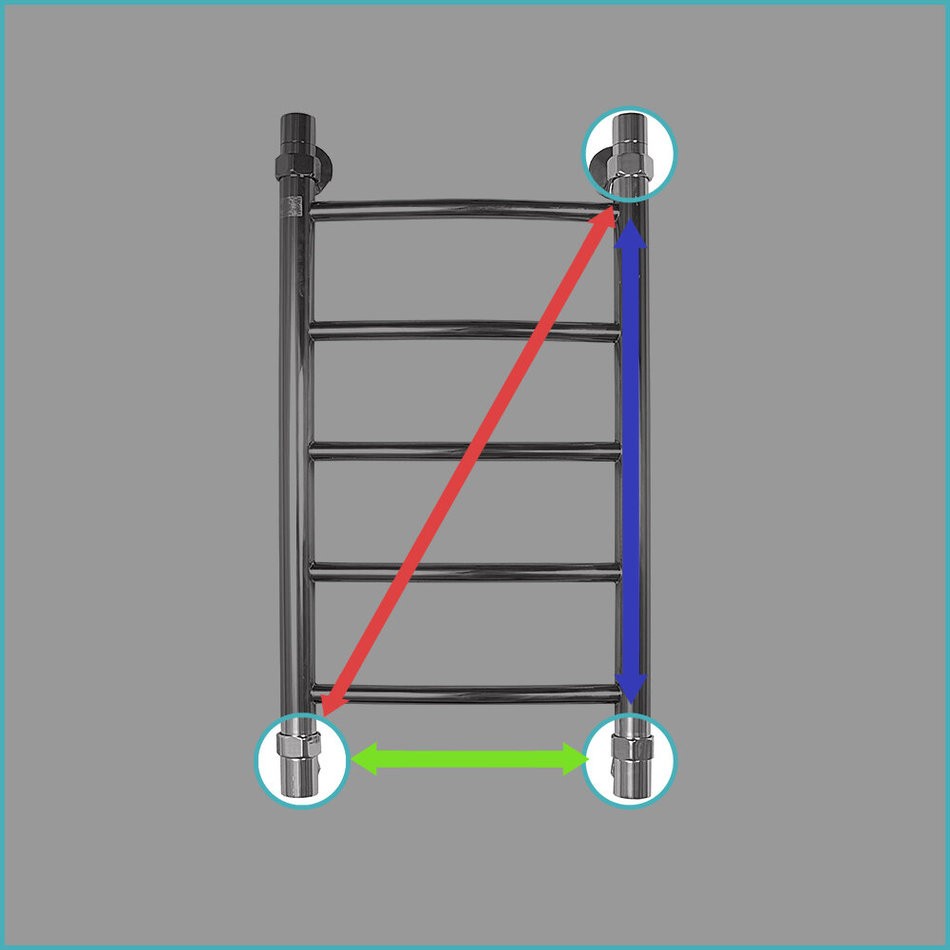 Межцентровое расстояние: 600 мм при боковом и диагональном подключении, 300 мм при нижнем подключении.