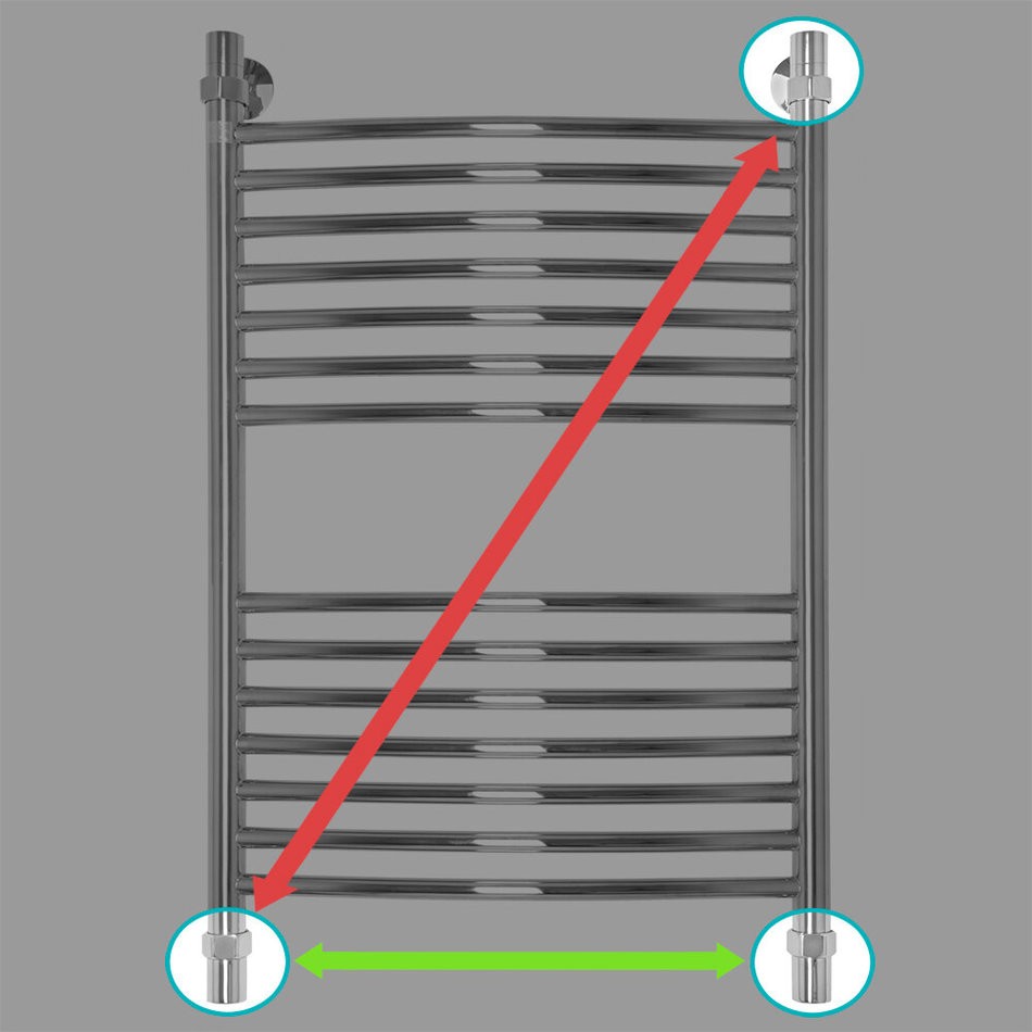 Межцентровое расстояние: 800 мм при боковом и диагональном подключении, 500 мм при нижнем подключении.