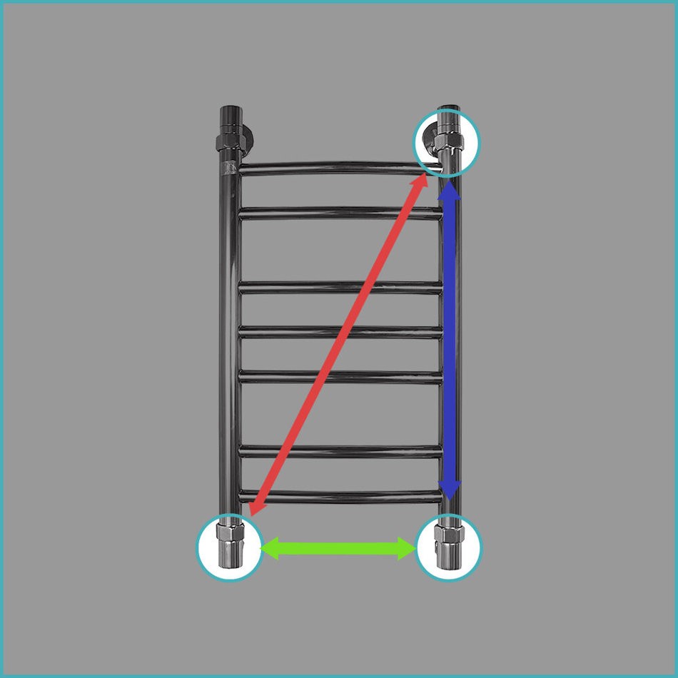 Межцентровое расстояние: 600 мм при боковом и диагональном подключении, 300 мм при нижнем подключении.