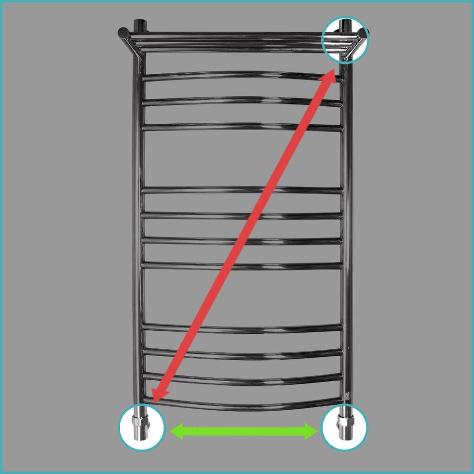 Межцентровое расстояние: 1000 мм при боковом и диагональном подключении, 500 мм при нижнем подключении.