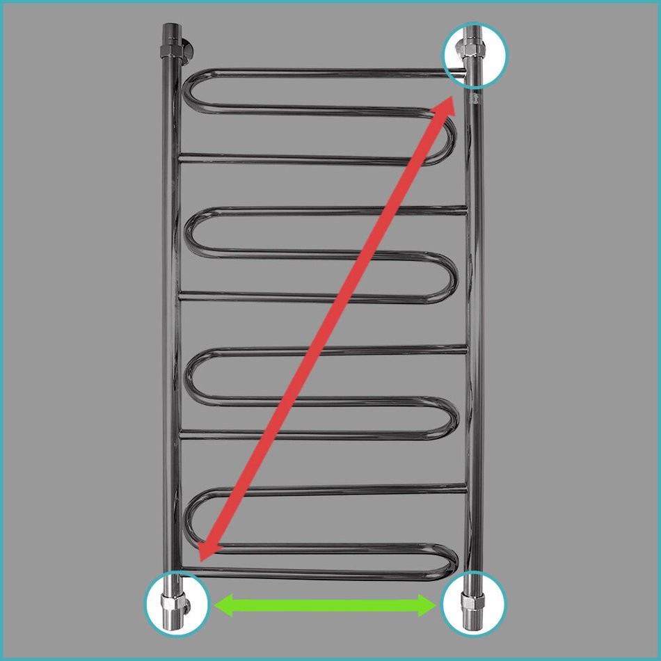 Межцентровое расстояние: 1000 мм при боковом и диагональном подключении, 500 мм при нижнем подключении.