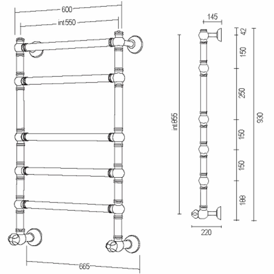 Полотенцесушитель водяной Margaroli Armonia 9-464-5 94645505BIN, высота 93 см, ширина 66.5 см, светлый никель