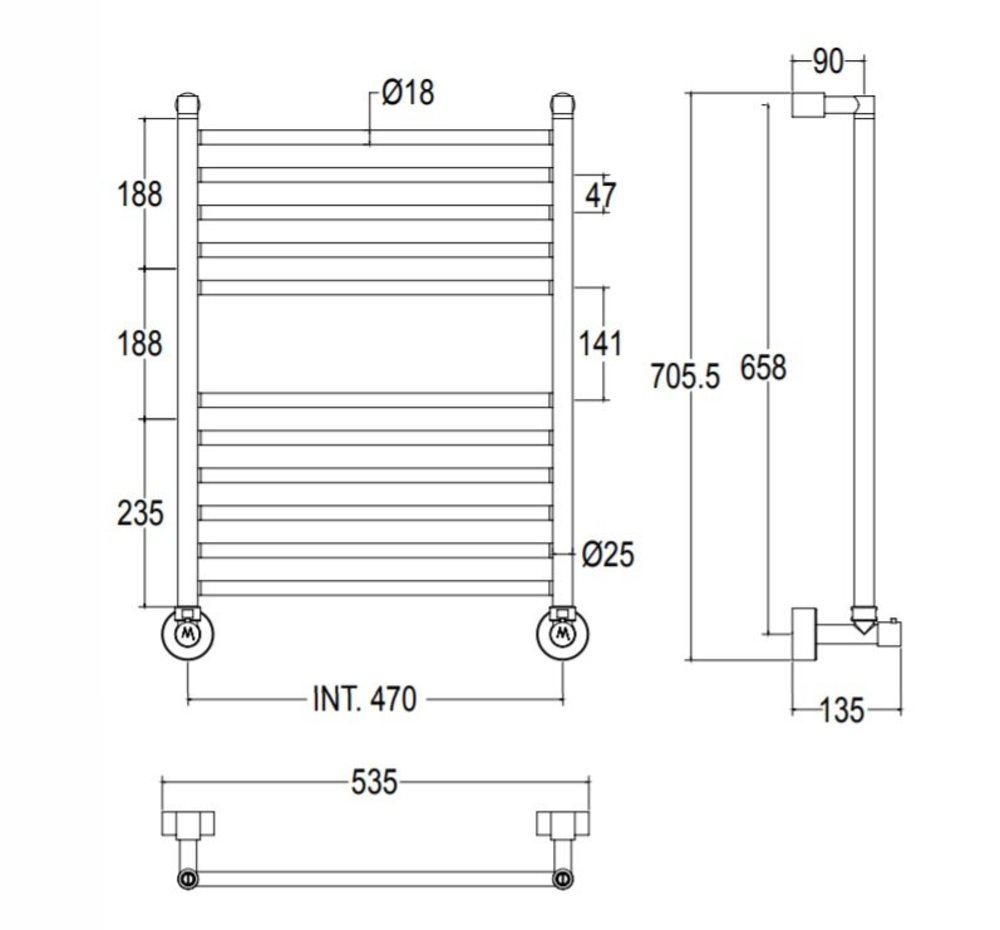 Полотенцесушитель водяной Margaroli Mini 3-484 34844711CRN, высота 70.55 см, ширина 53.5 см, хром