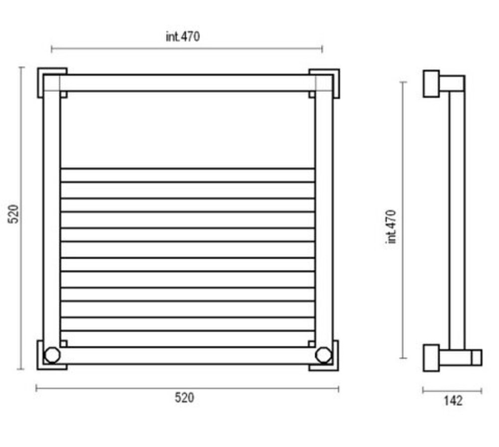 - Стационарный полотенцесушитель из латунной трубы диаметром 25x25 / 30x30 мм