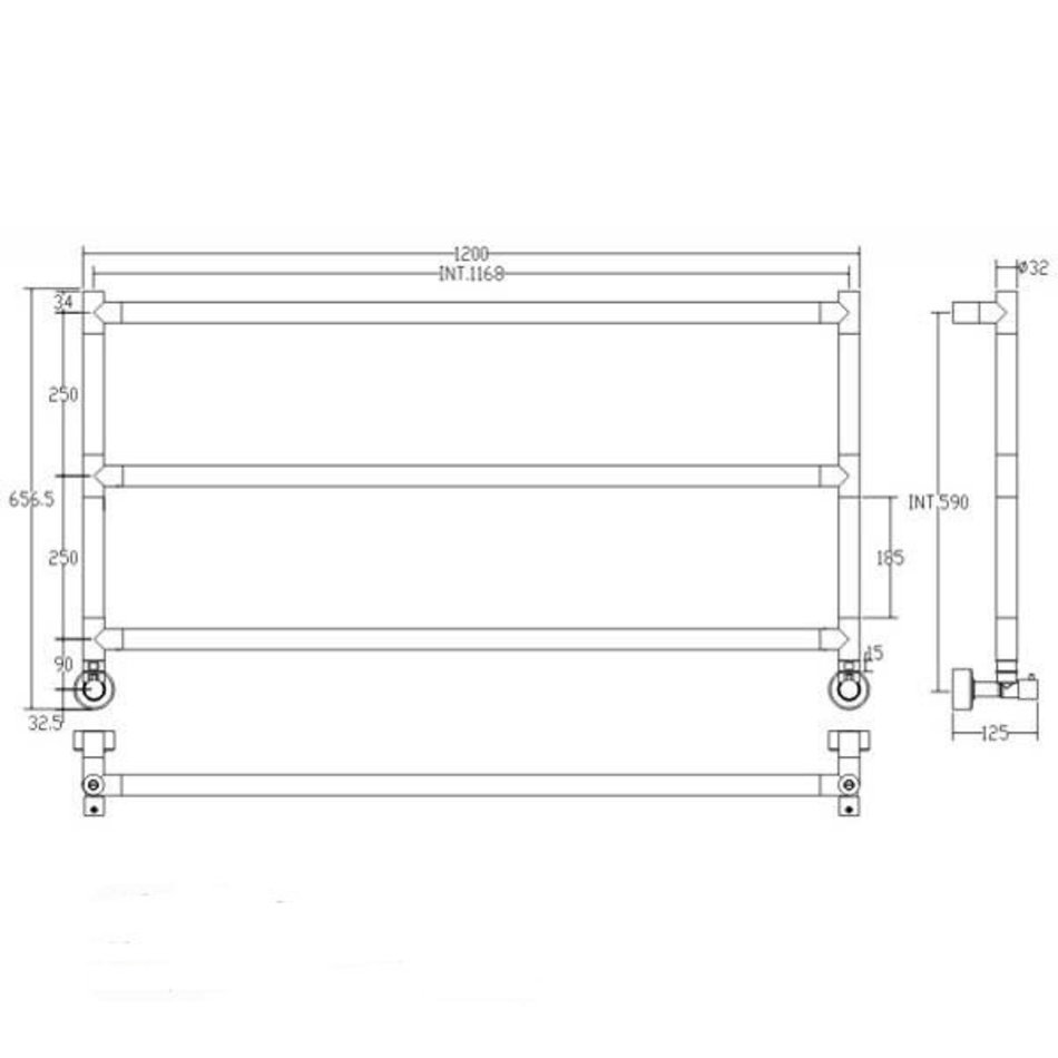 Стационарный модульный полотенцесушитель из латунной трубы диаметром Ø32 мм присоединяется к отопительной системе водоснабжения.
