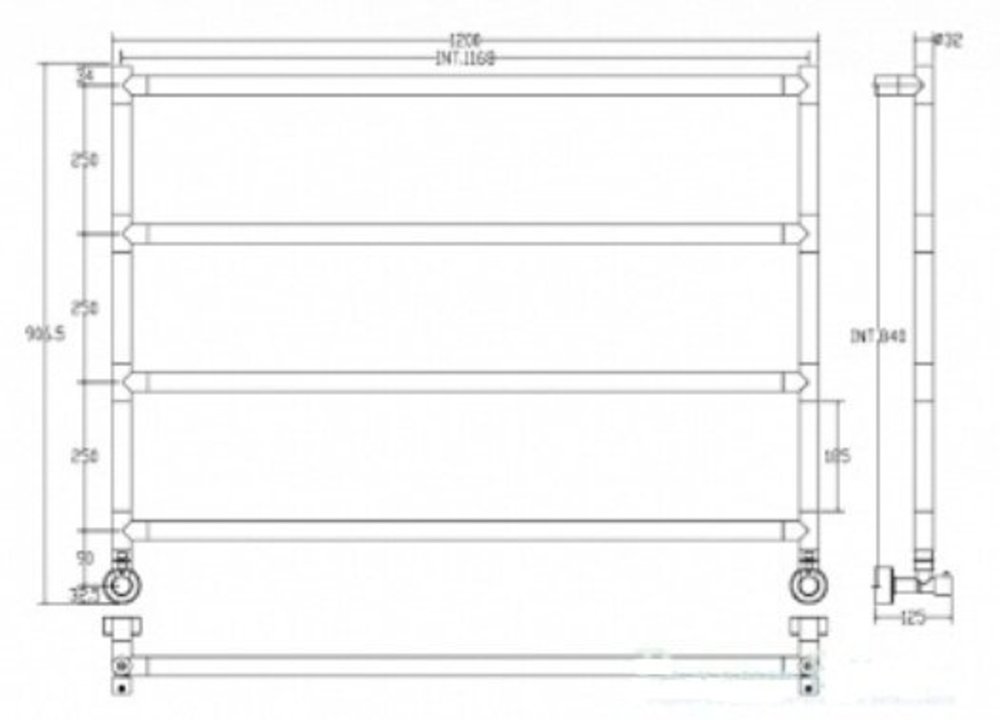 Стационарный модульный полотенцесушитель из латунной трубы диаметром Ø32 мм присоединяется к отопительной системе водоснабжения.