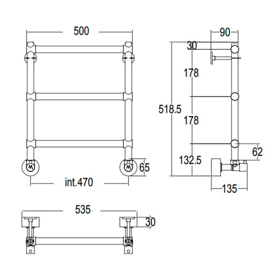 Полотенцесушитель водяной Margaroli Sole 4404703OBN, высота 50 см, ширина 50 см, старая бронза