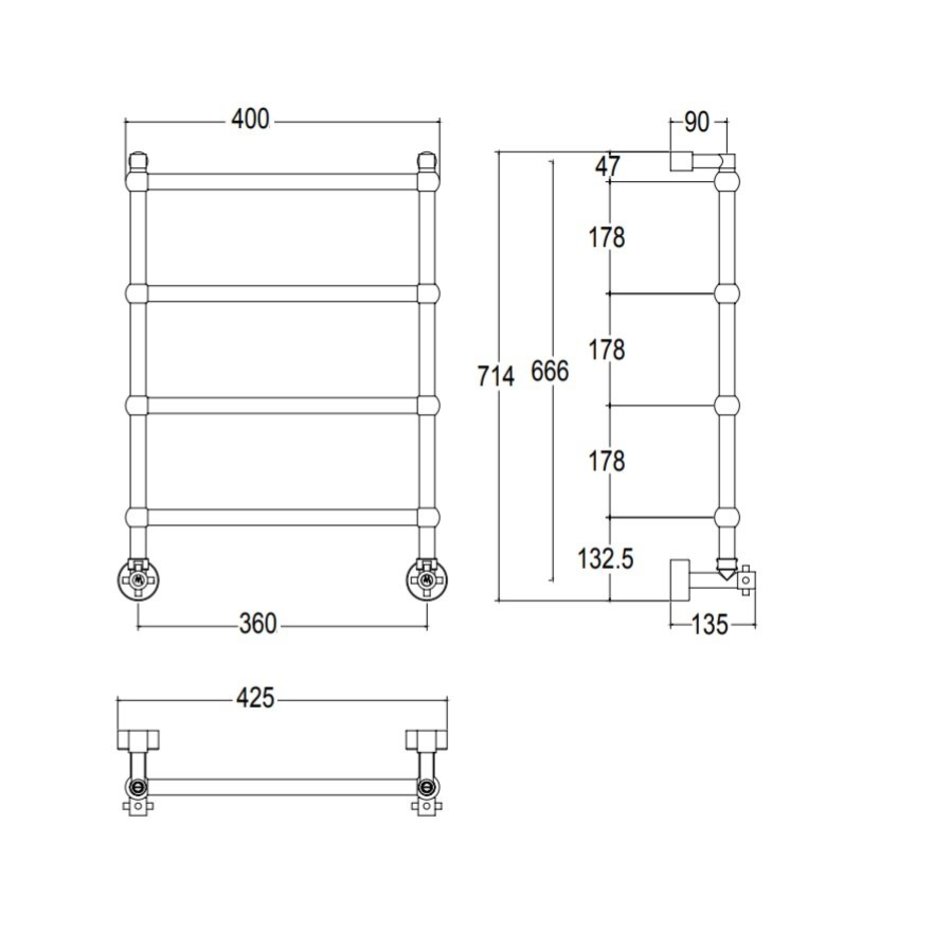 Полотенцесушитель водяной Margaroli Sole 442TS 442TS3604OB, высота 71.4 см, ширина 42.5 см, старая бронза
