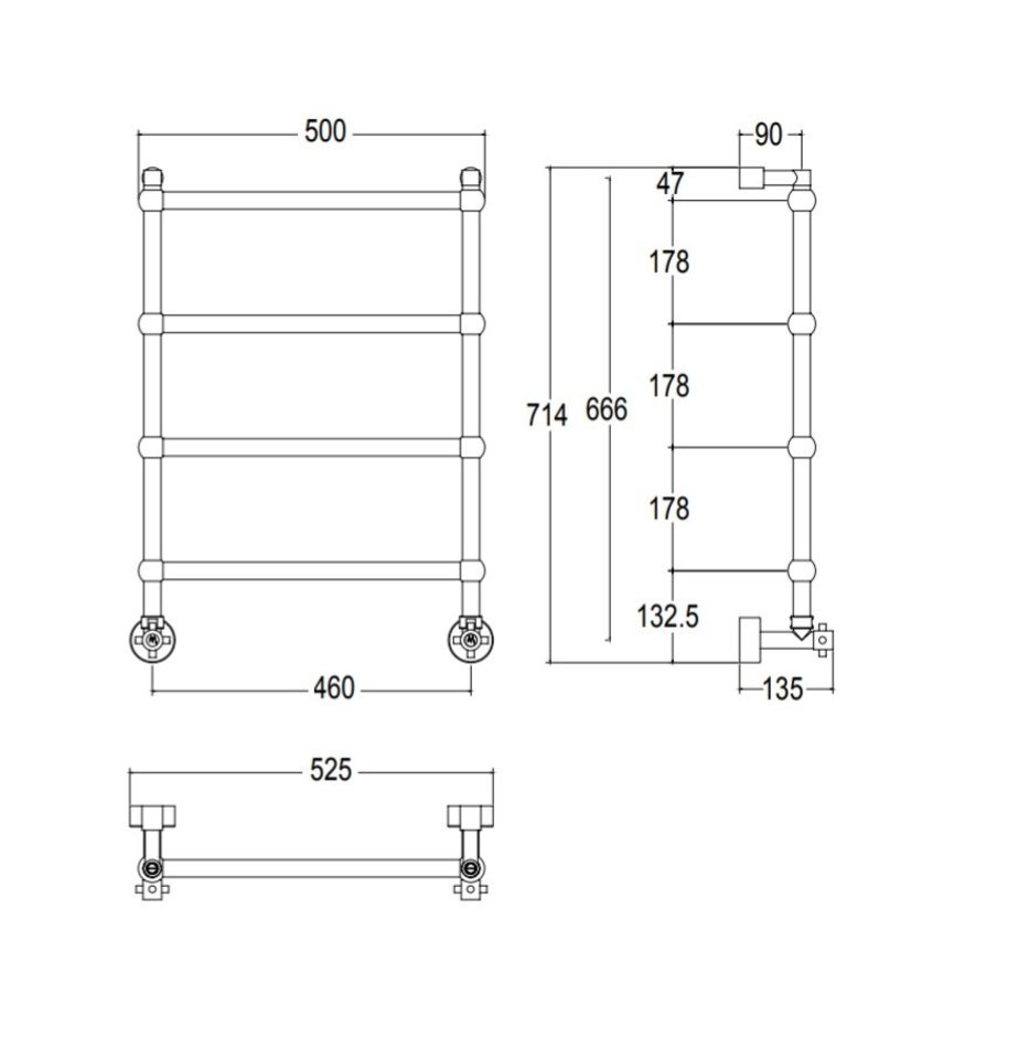 Полотенцесушитель водяной Margaroli Sole 442TS 442TS4604OB, высота 71.4 см, ширина 52.5 см, старая бронза