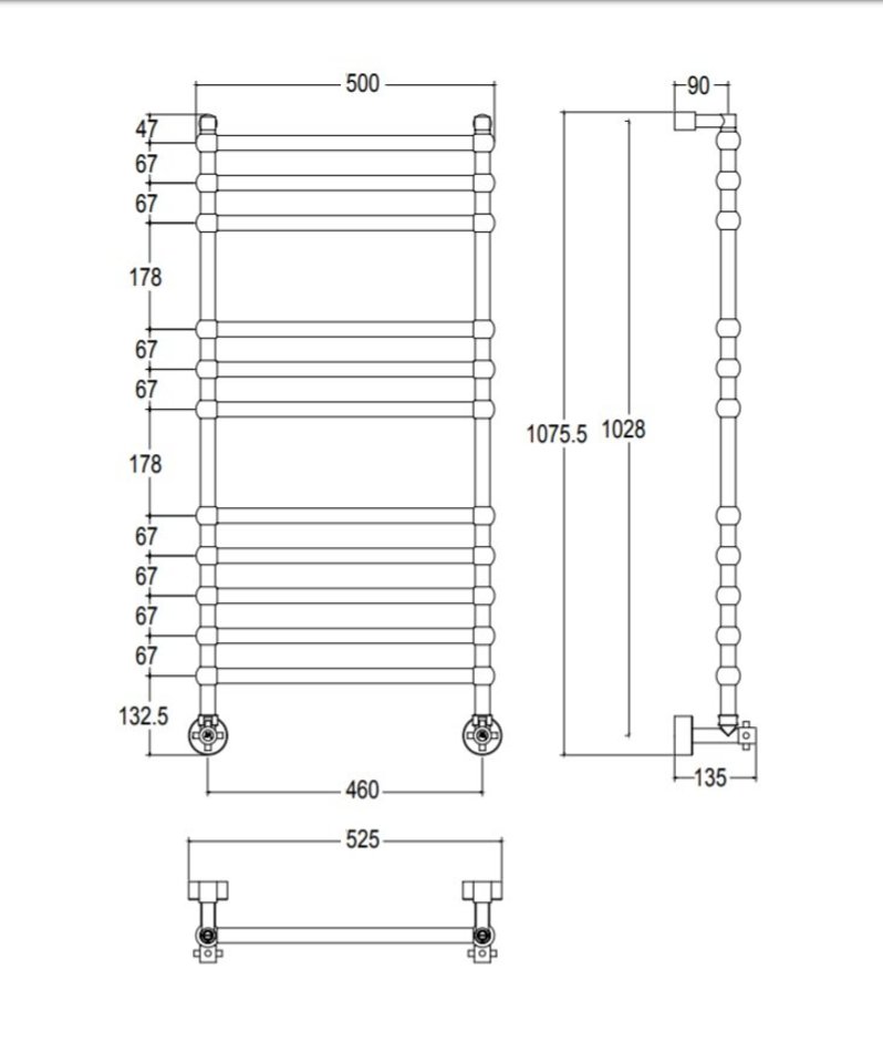 Полотенцесушитель водяной Margaroli Sole 464-11-TS 464TS4711OB, высота 107.6 см, ширина 52.5 см, старая бронза