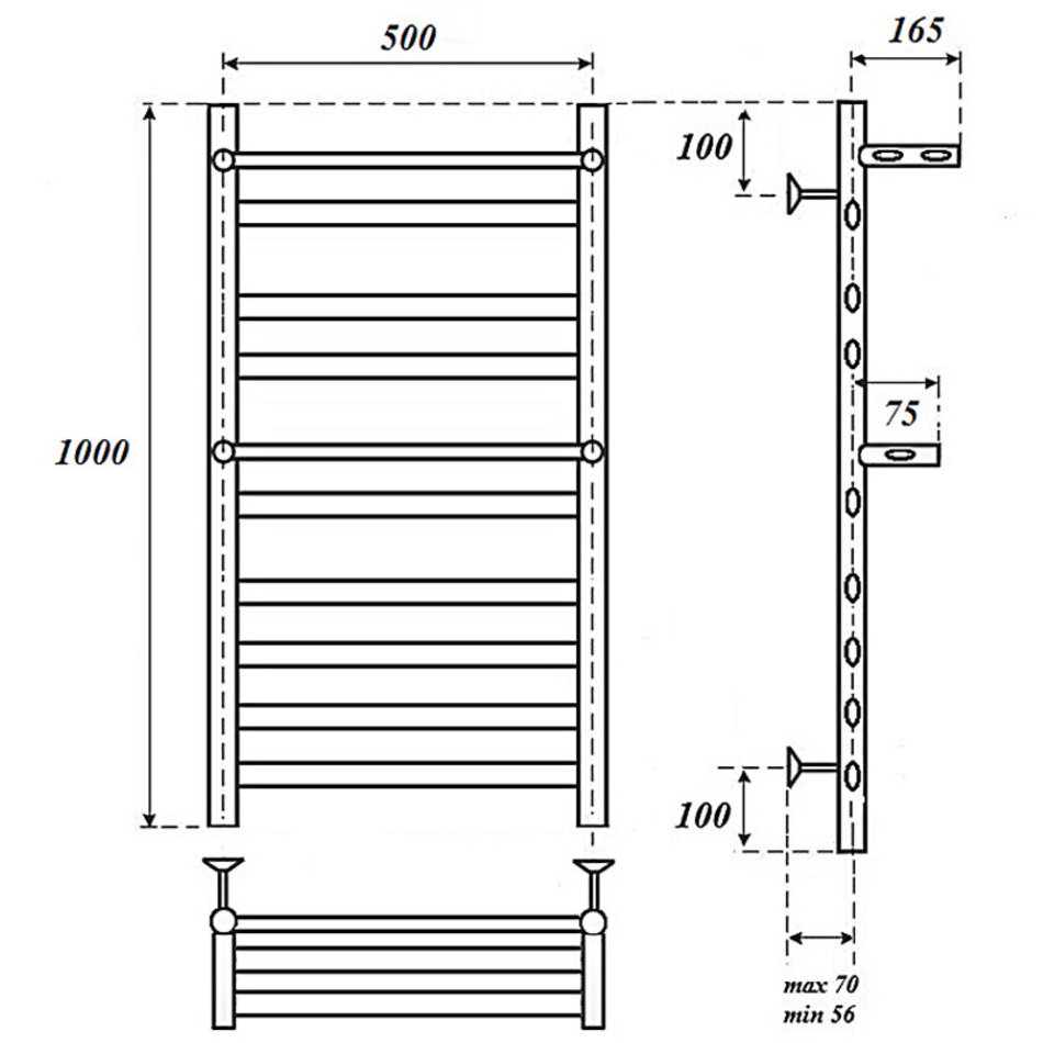 Полотенцесушитель водяной Point Артемида П8, ширина 50 см, высота 100 см, с двумя полками, хром, PN14150P