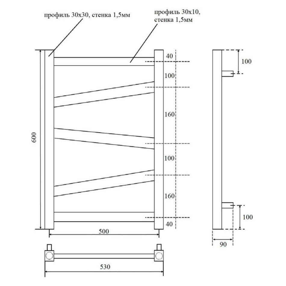 Полотенцесушитель водяной Point Феникс PN15156, ширина 50 см, высота 60 см, нижнее подключение 50 см, цвет хром