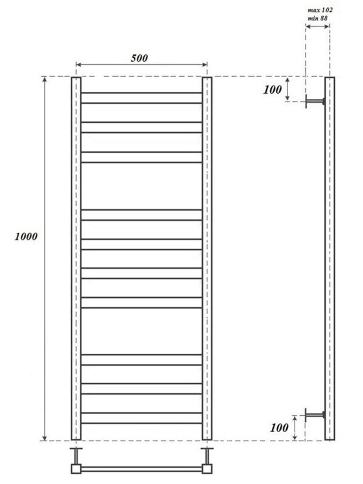 Комплектация: Полотенцесушитель - 1 шт., кронштейны для крепления к стене - 4 шт., кран Маевского - 1 шт., заглушка декоративная - 1 шт., паспорт/гарантийный талон - 1 шт.
