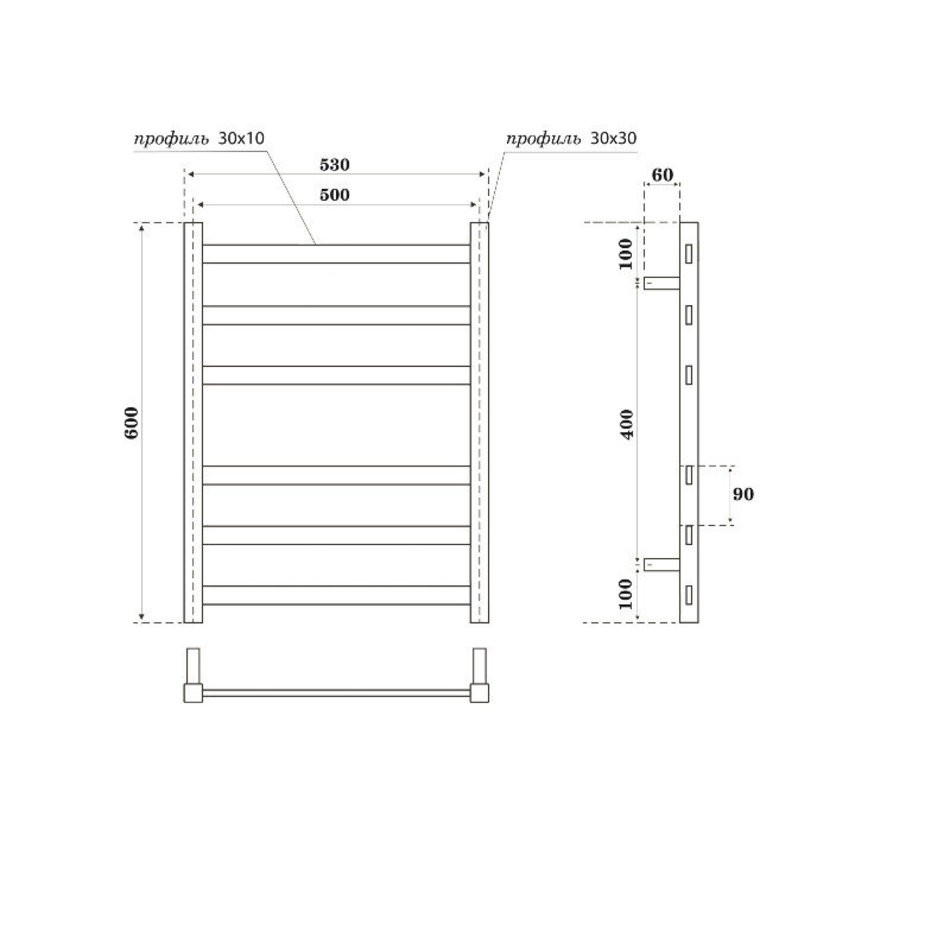 Полотенцесушитель водяной Point Меркурий PN83156B, ширина 50 см, высота 60 см, нижнее подключение 50 см, цвет черный