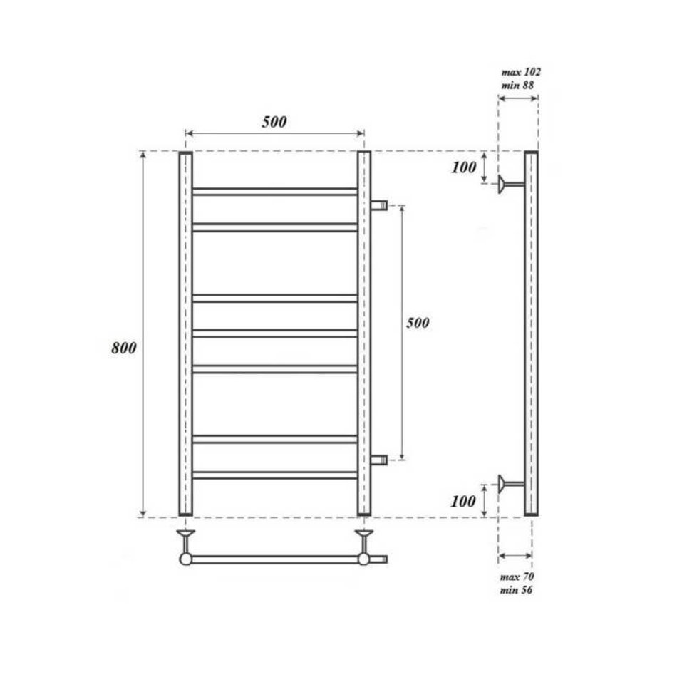Полотенцесушитель водяной Point Серия 10, П7, ширина 50 см, высота 80 см, с боковым подключением 50 см, хром, PN10558