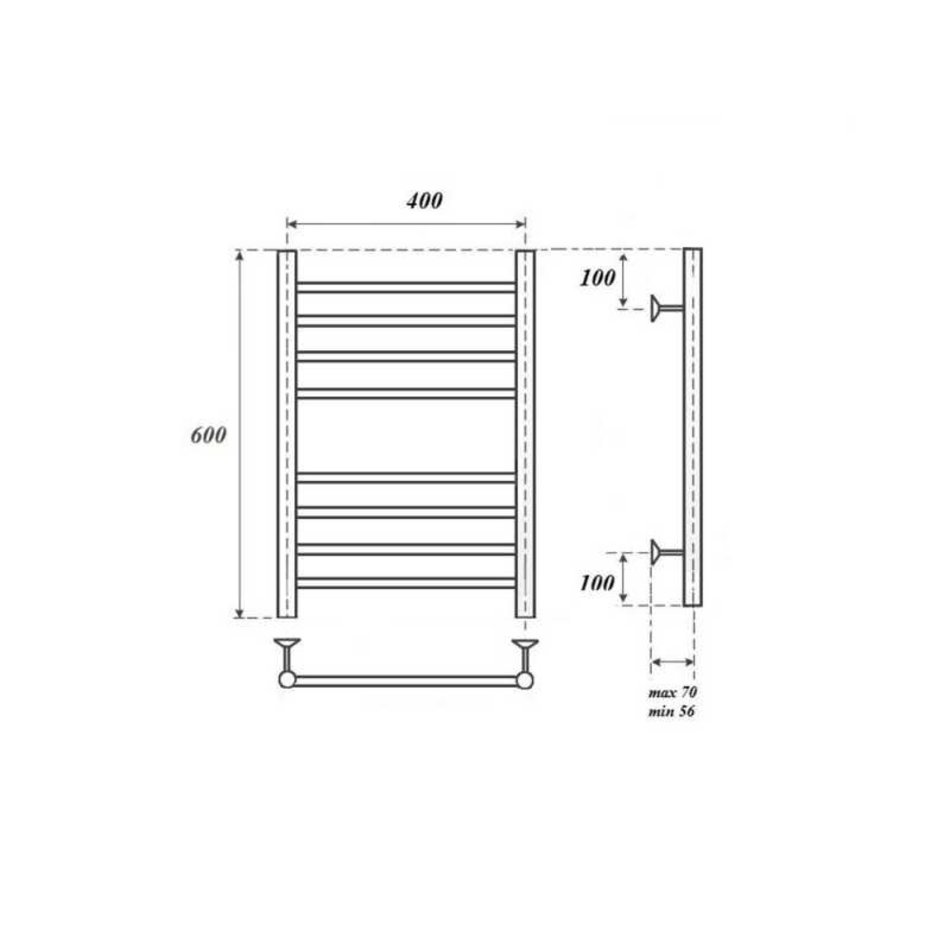 Комплектация: Полотенцесушитель - 1 шт., кронштейны для крепления к стене - 4 шт., кран Маевского - 1 шт., заглушка декоративная - 1 шт., паспорт/гарантийный талон - 1 шт.