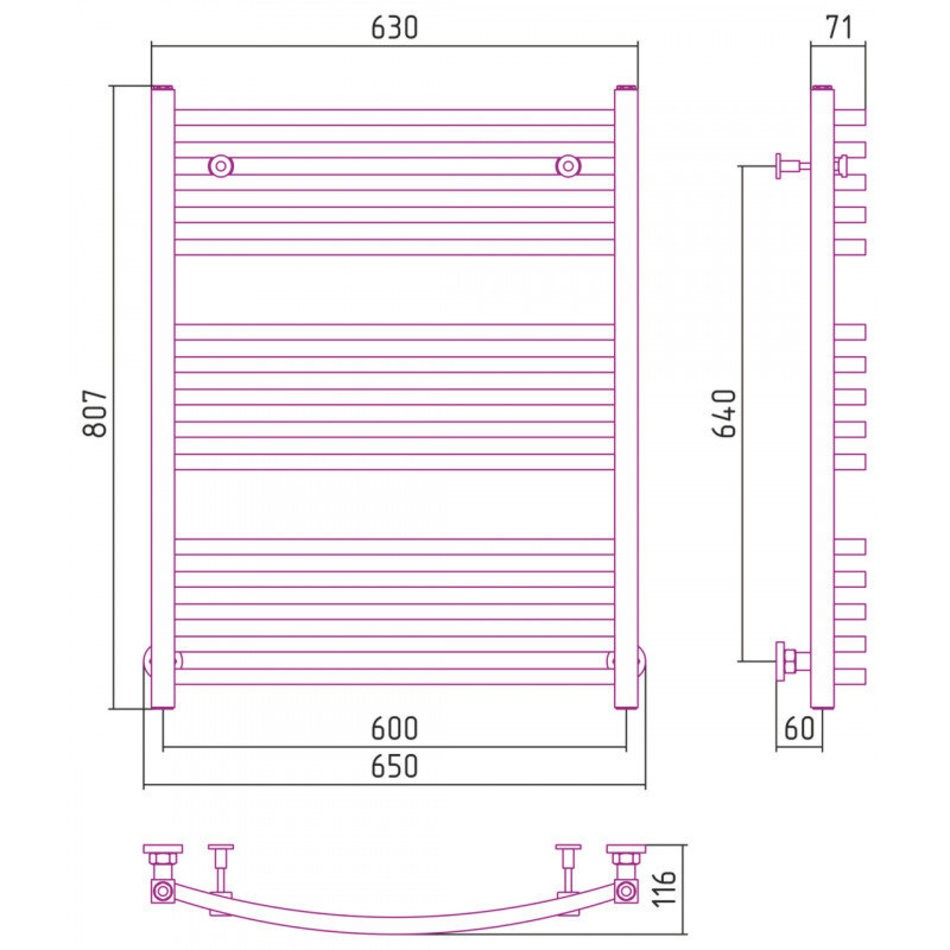 Полотенцесушитель водяной Сунержа Аркус 071-0251-8060, высота 80 см, ширина 60 см, универсальное подключение, цвет сатин