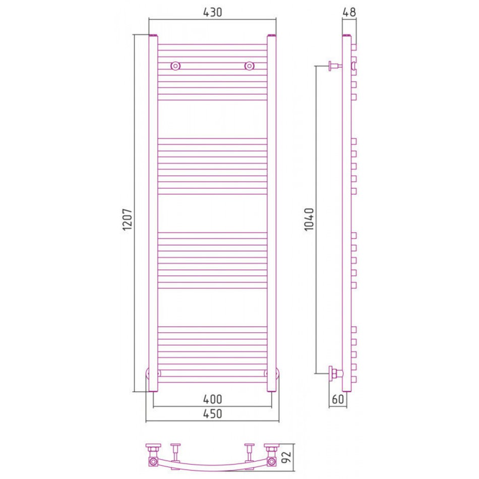 Полотенцесушитель водяной Сунержа Аркус 12-0251-1240, высота 120 см, ширина 40 см, универсальное подключение, цвет белый